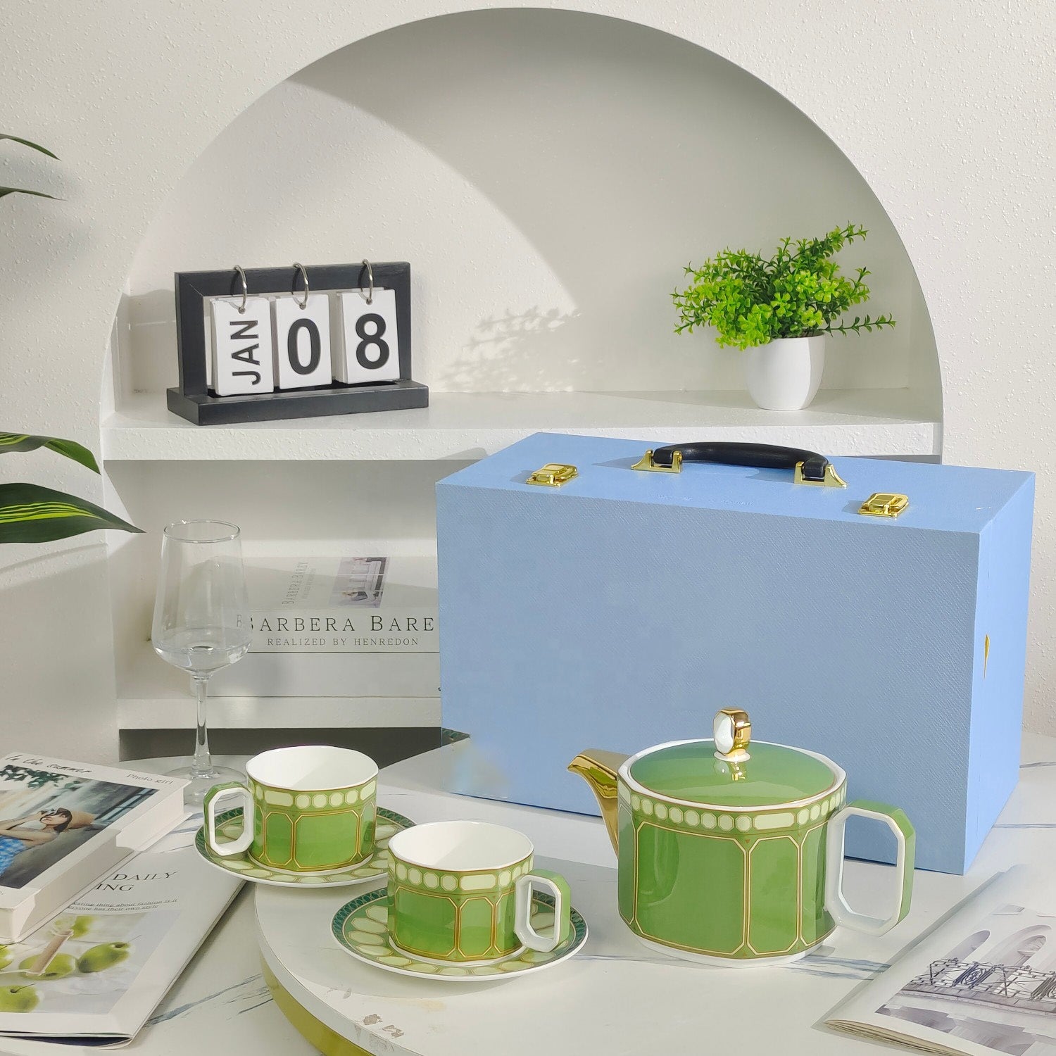 أداة قهوة سيراميك طراز فاخر من 5 قطع الأفضل مبيعًا مع صحن بورسلين وخفاقة خيزران للاستخدام المنزلي