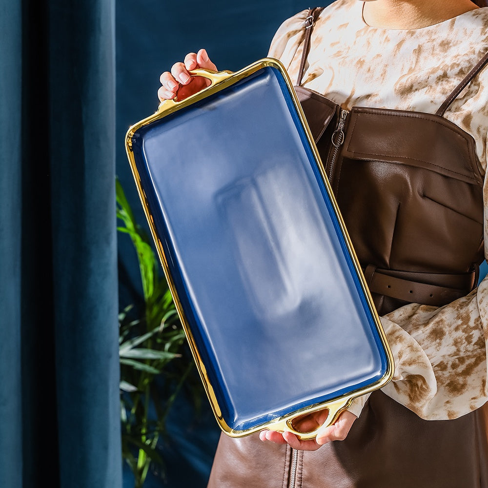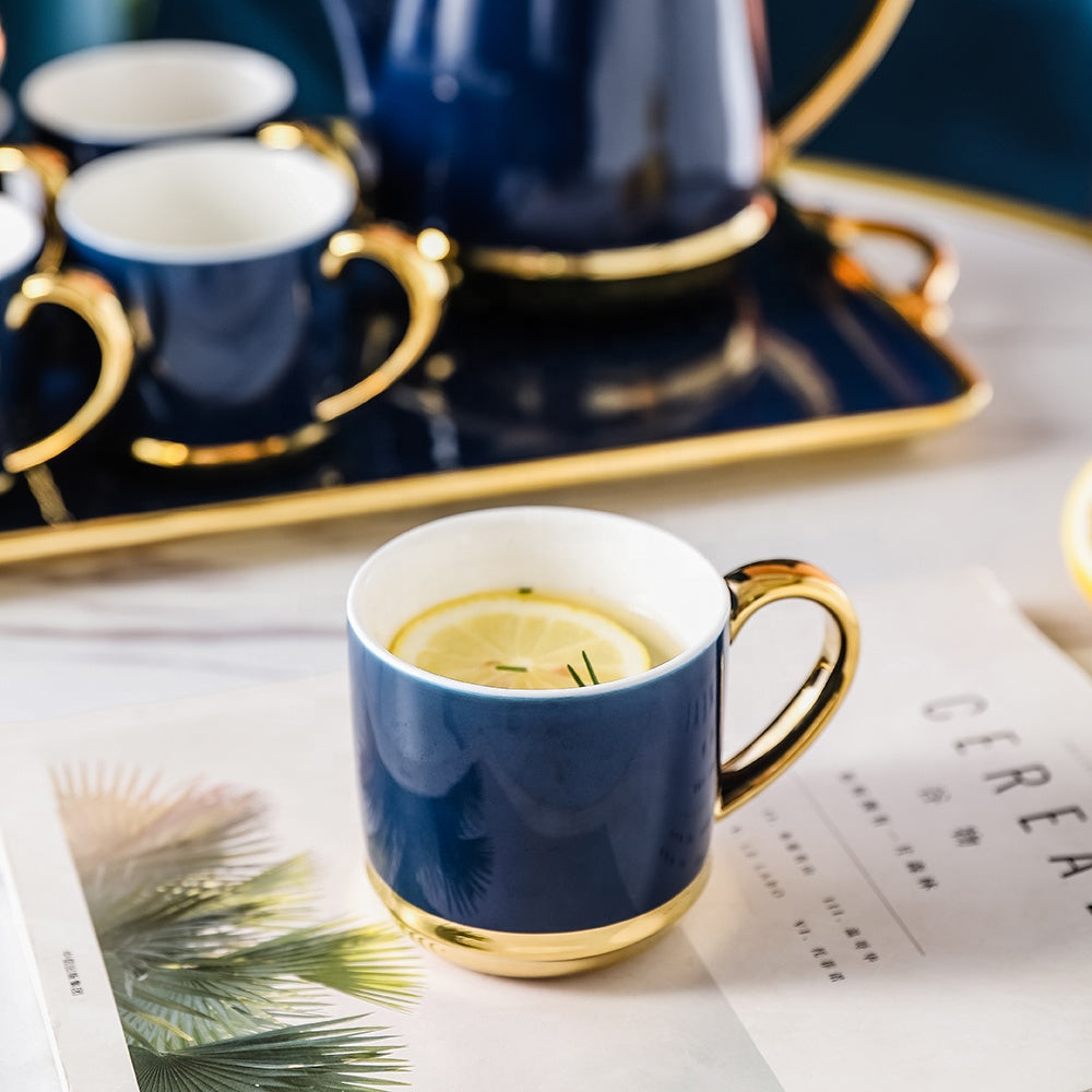 أطقم شاي و الأزرق 6 قطعة الكؤوس و السيراميك صينية مع الذهب حافة طقم شاي من السيراميك مع رغوة مربع و اللون هدية مربع