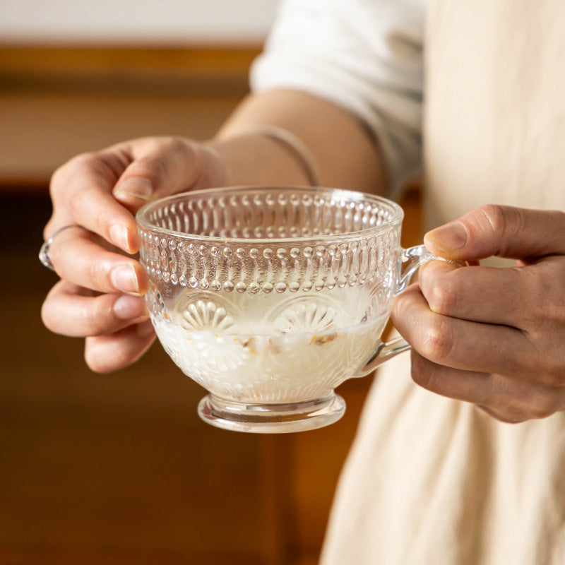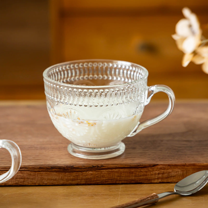 عالية القيمة الزجاج الشفاف الرجعية منقوش اللبن الشوفان أكواب شرب القهوة المنزلية