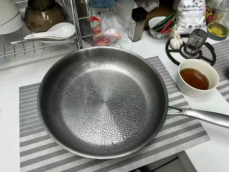 مقلاة من التيتانيوم الخالص غير مطلية بنمط مطرقة قلي التيتانيوم