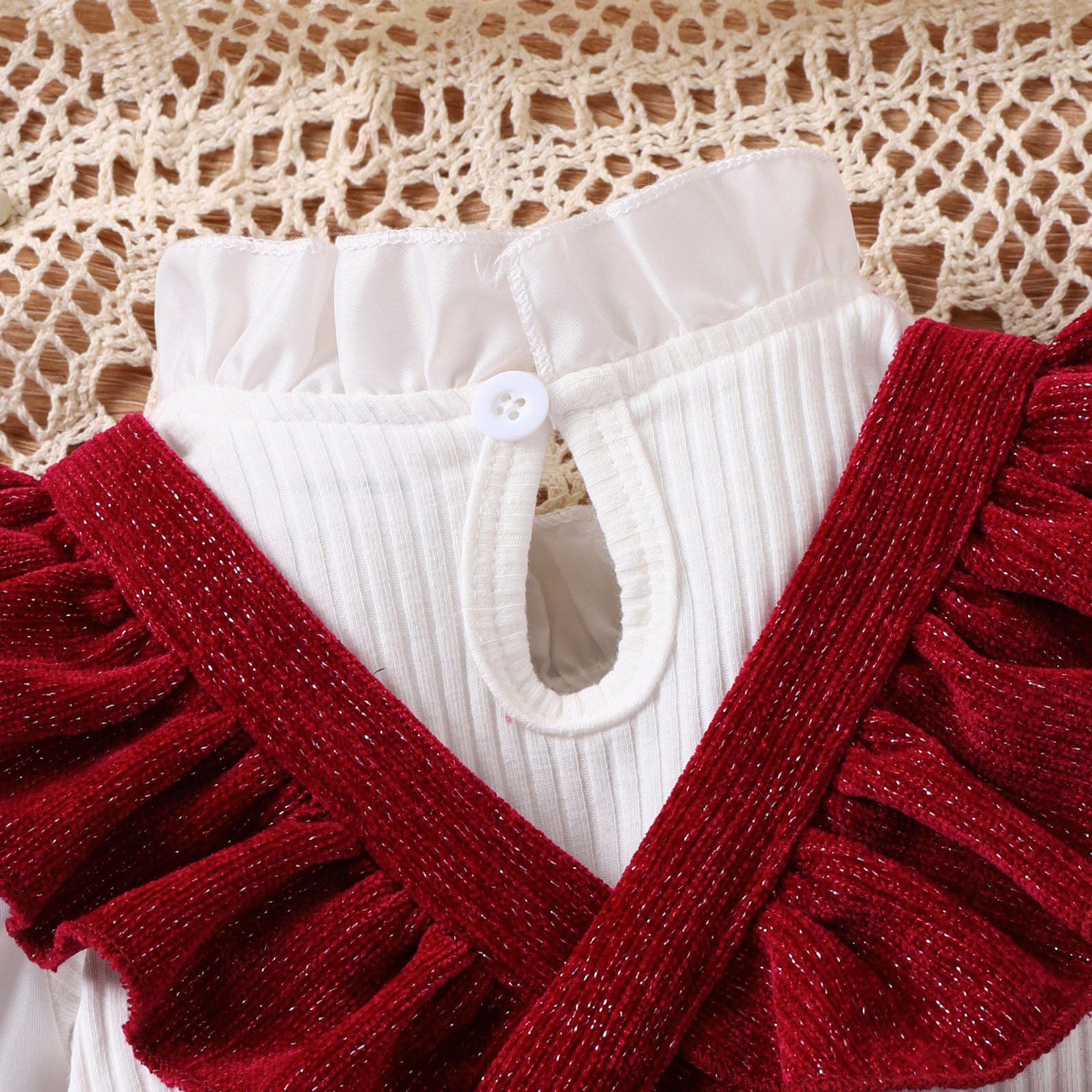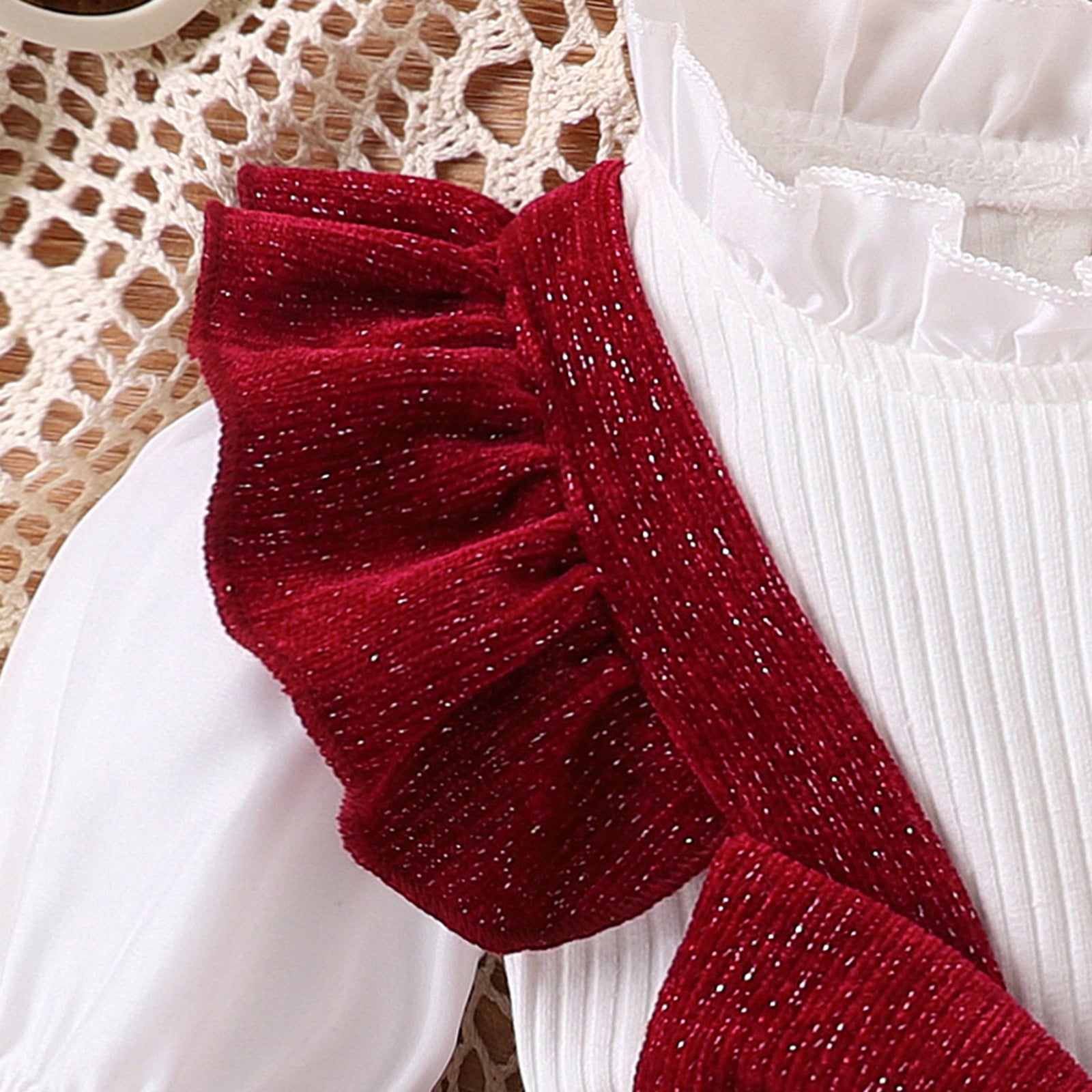 مجموعات ملابس شتوية للفتيات 2024، بلوزة بيضاء بياقة دانتيل، فستان أحمر من الكوردروي مع فيونكة، ملابس أعياد الميلاد للأطفال حديثي الولادة، ملابس خريفية للأطفال