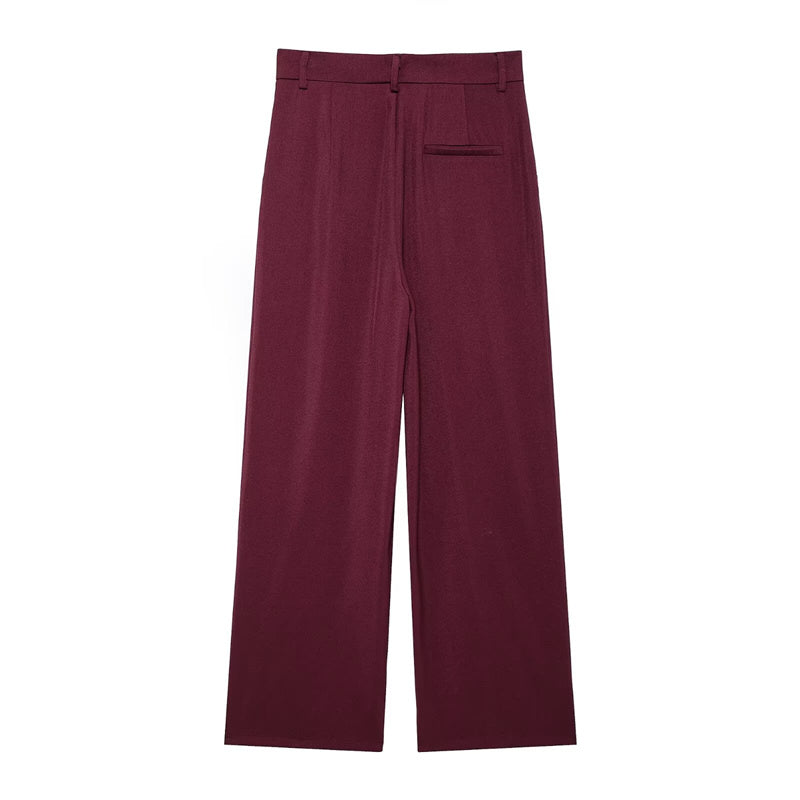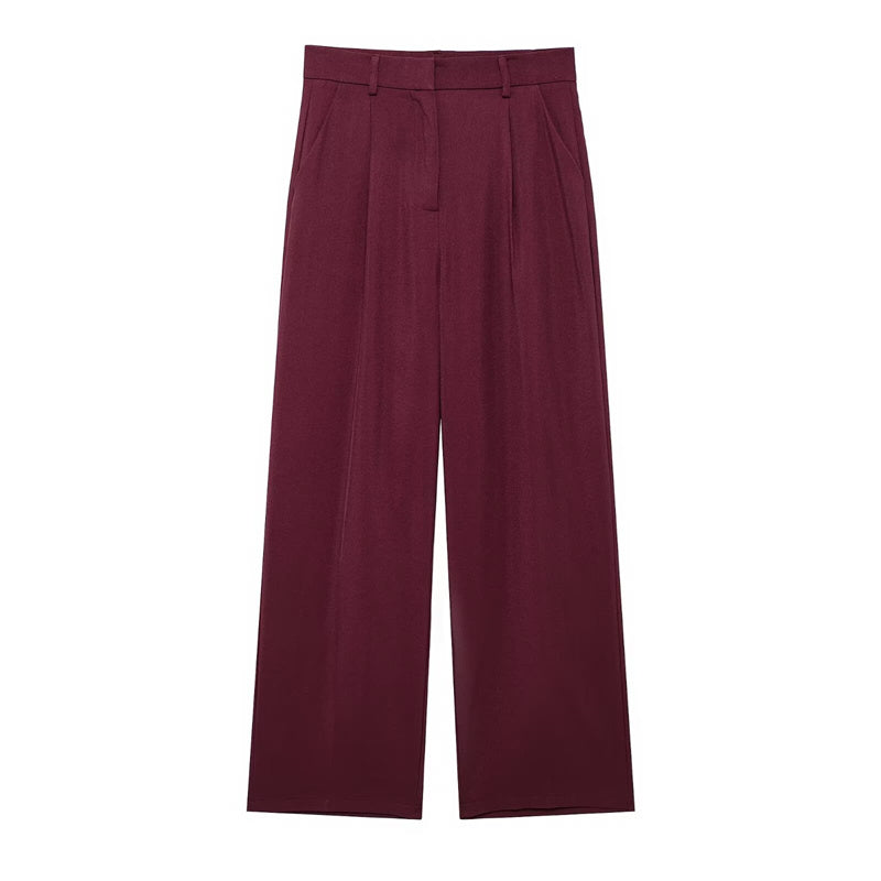 بنطلون نسائي من TAOP&ZA موديل 8384، بقصة مستقيمة وعصرية، وخصر مرتفع، باللون البني المحمر، مناسب لأزياء خريف 2024 الكلاسيكية غير الرسمية