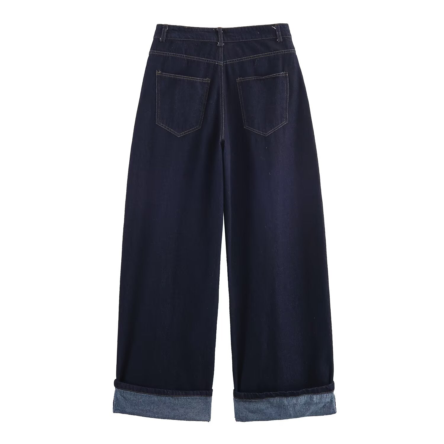 جينز Taoop & ZA أنيق ومتعدد الاستخدامات خريف جديد للنساء كاجوال فضفاض متعدد الاستخدامات عالي الخصر مستقيم الكفة