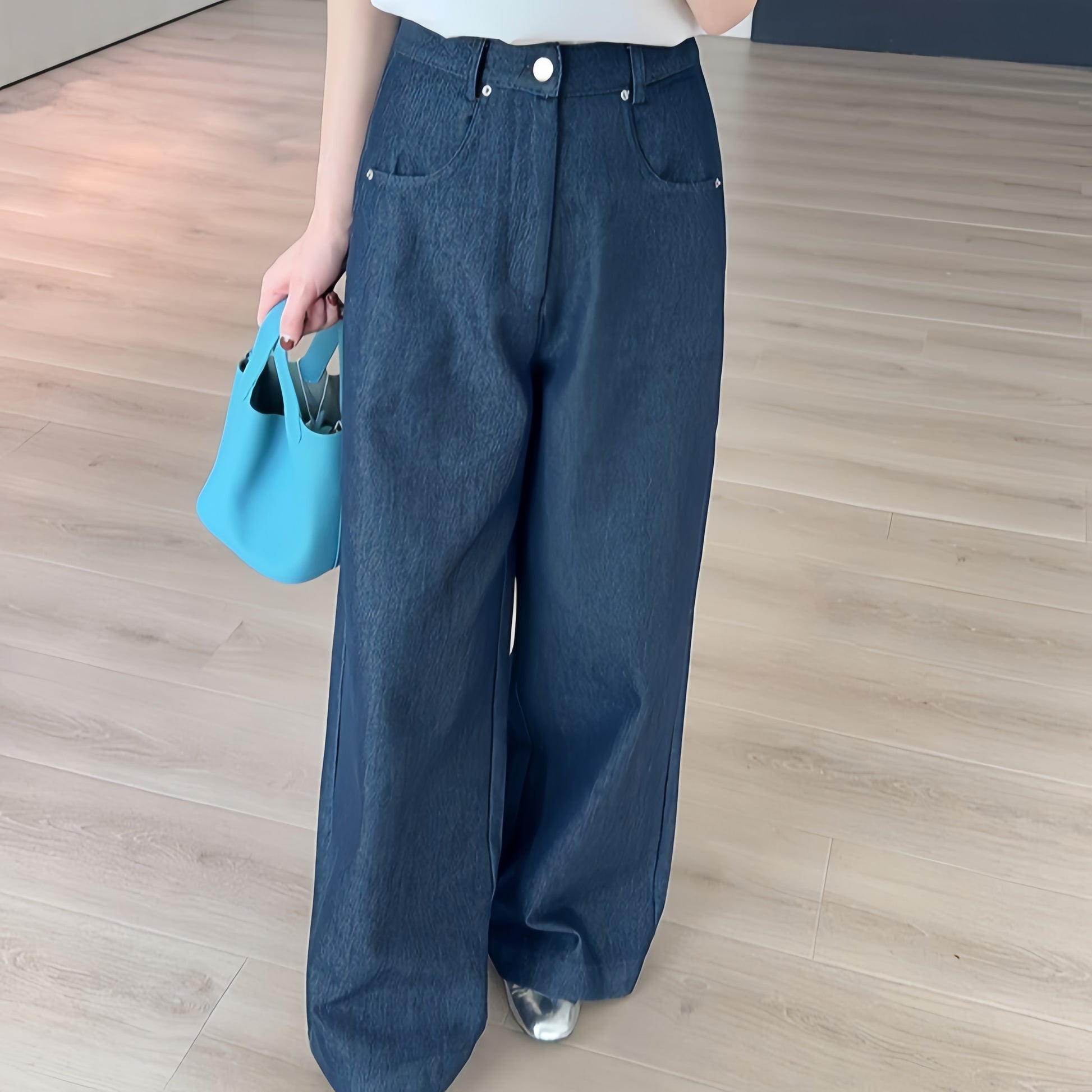 جينز نسائي كوري كاجوال بنطلون جينز بساق واسعة سروال ساق مستقيمة