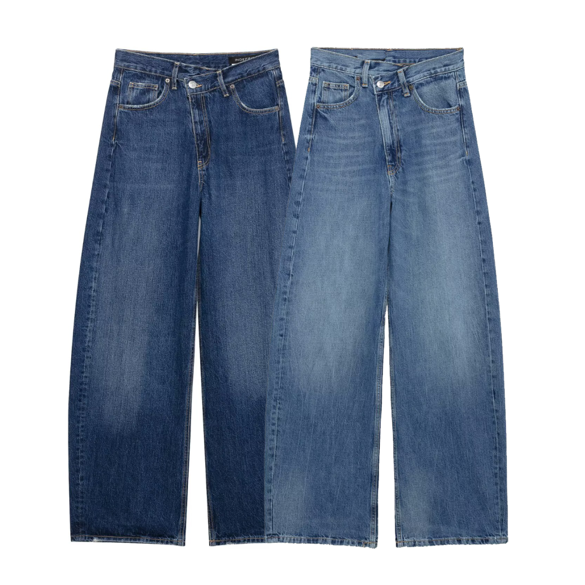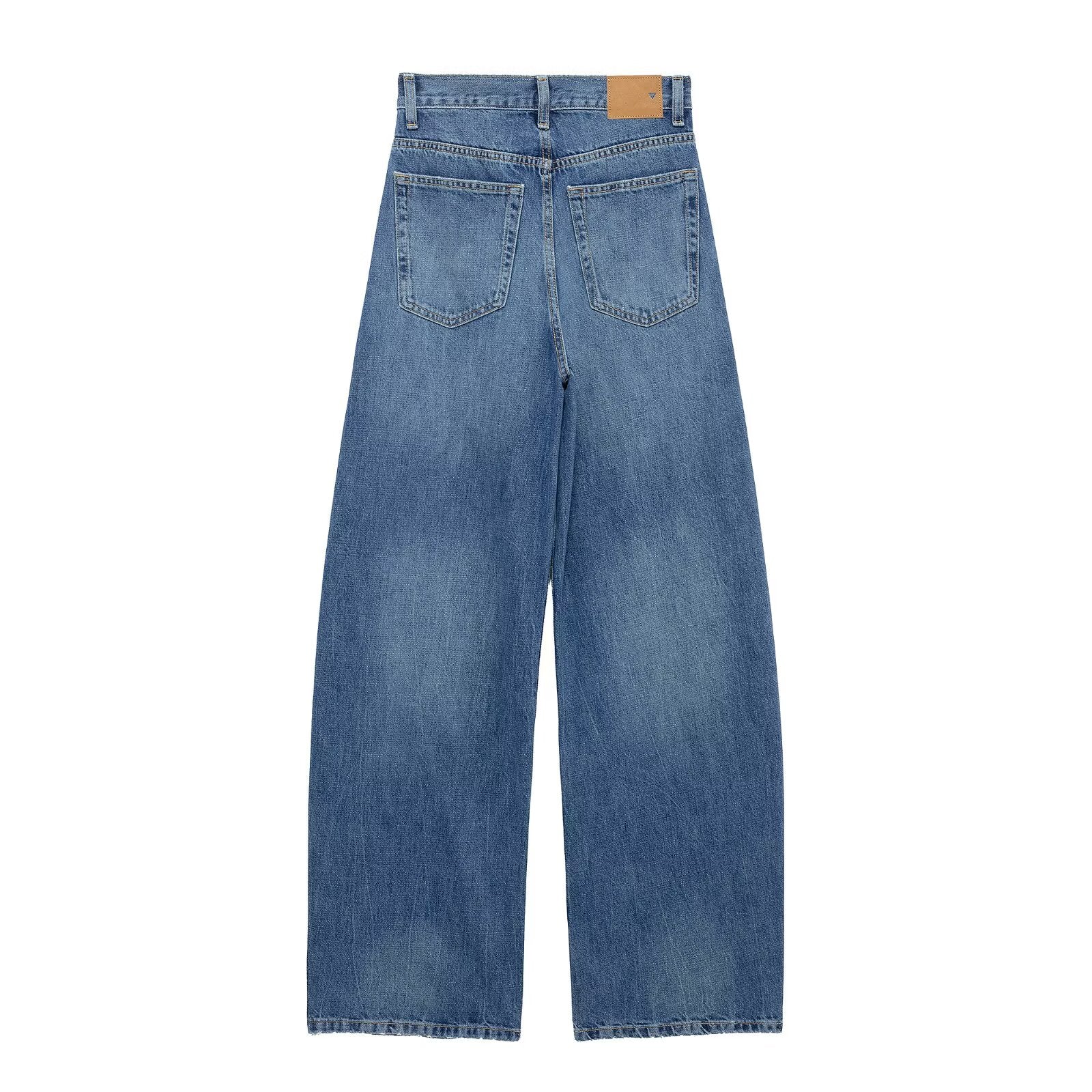 بنطلون جينز فضفاض بخصر متوسط وتصميم أوروبي وأمريكي جديد لربيع 2025 من TAOP&ZA، بزرارتين وقصة كاجوال