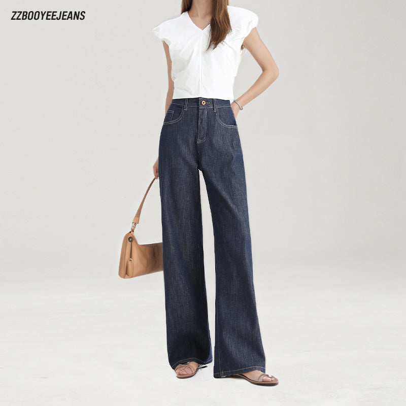 سراويل دنيم عالية الجودة مخصصة للتنحيف بأرجل واسعة للنساء عالية الخصر بأربعة طرق مطاطية للجينز للنساء