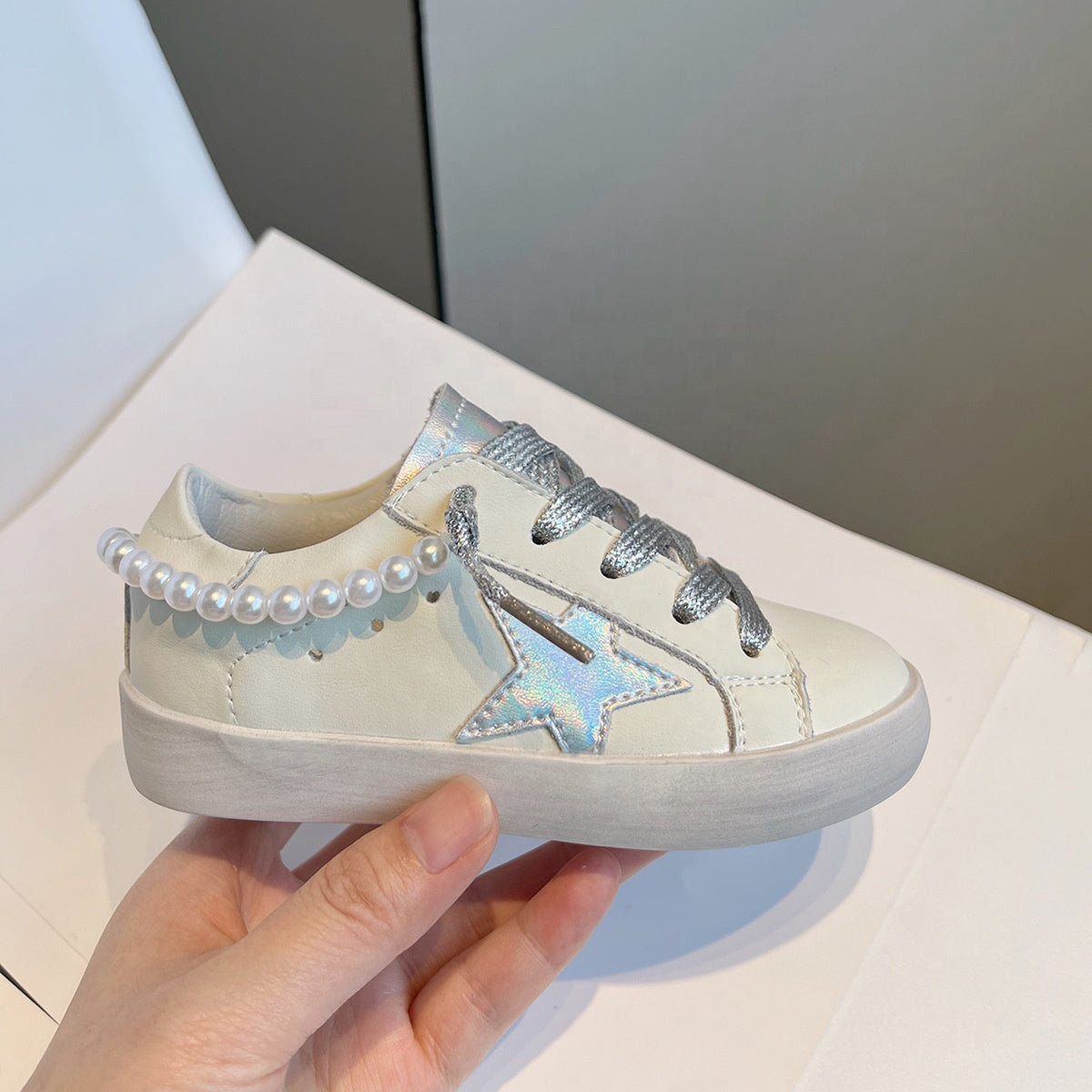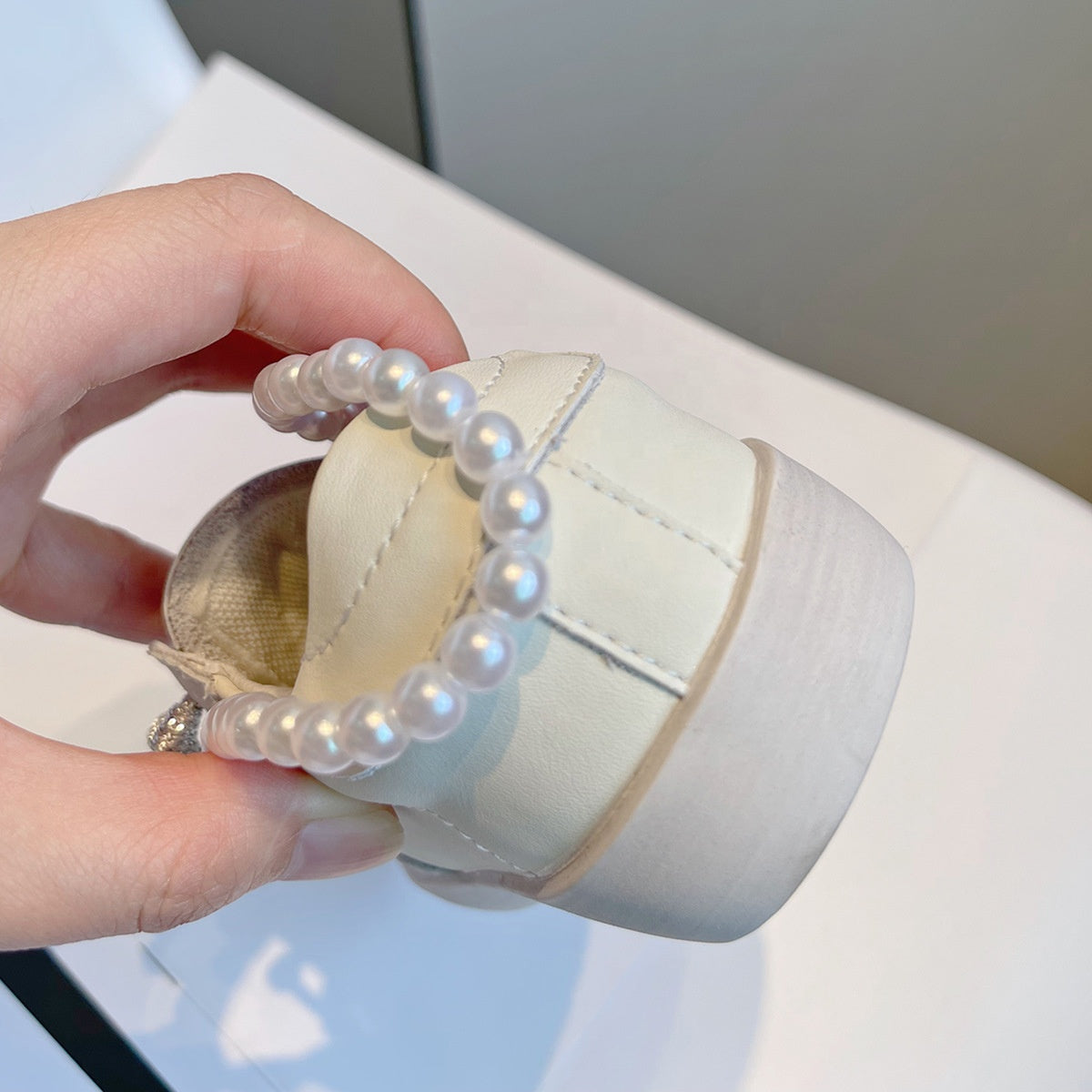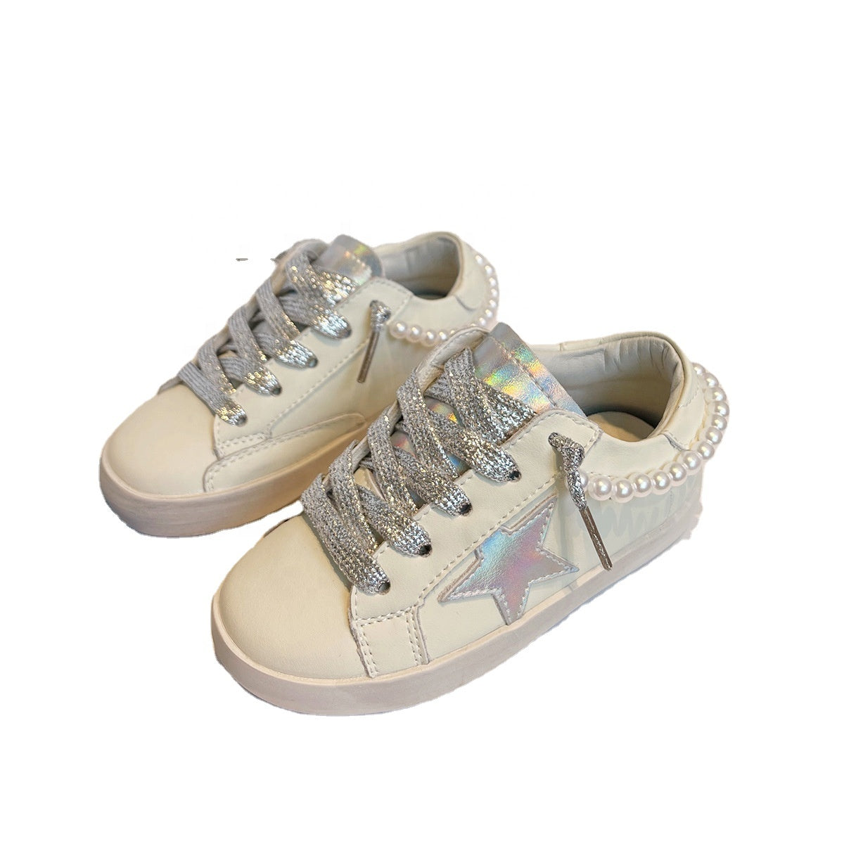 أحذية أطفال للبنات بتصميم جديد وأنيق، مزينة بأحجار لامعة، نعل ناعم، أحذية رياضية عصرية للأطفال مع خرزات لؤلؤية