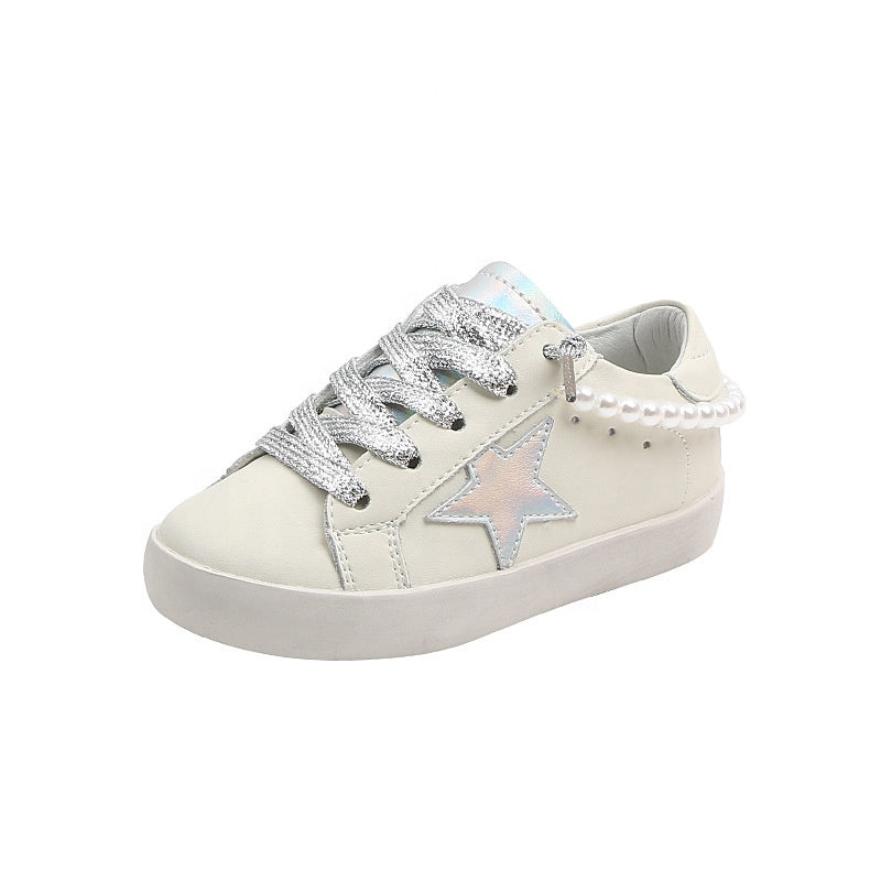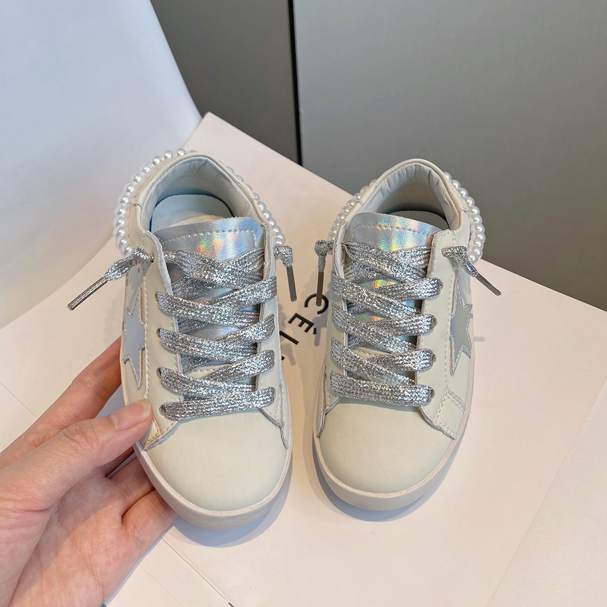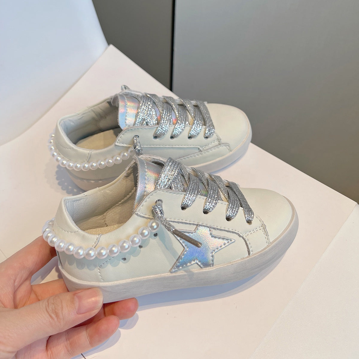 أحذية أطفال للبنات بتصميم جديد وأنيق، مزينة بأحجار لامعة، نعل ناعم، أحذية رياضية عصرية للأطفال مع خرزات لؤلؤية