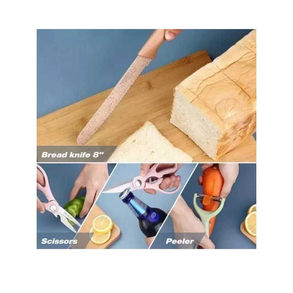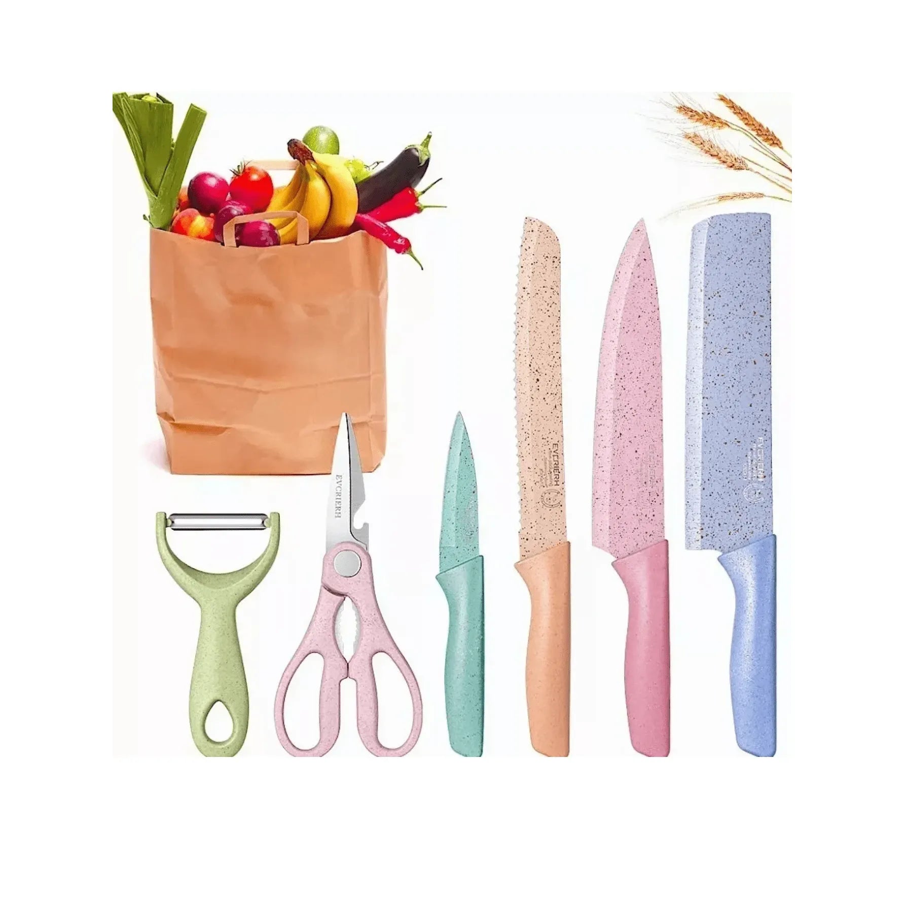 مجموعة من 6 سكاكين مطبخ من الفولاذ المقاوم للصدأ تشمل الشيف وتقطيع شفرة يدوية مع شعار مخصص مقبض PP شعار ليزر