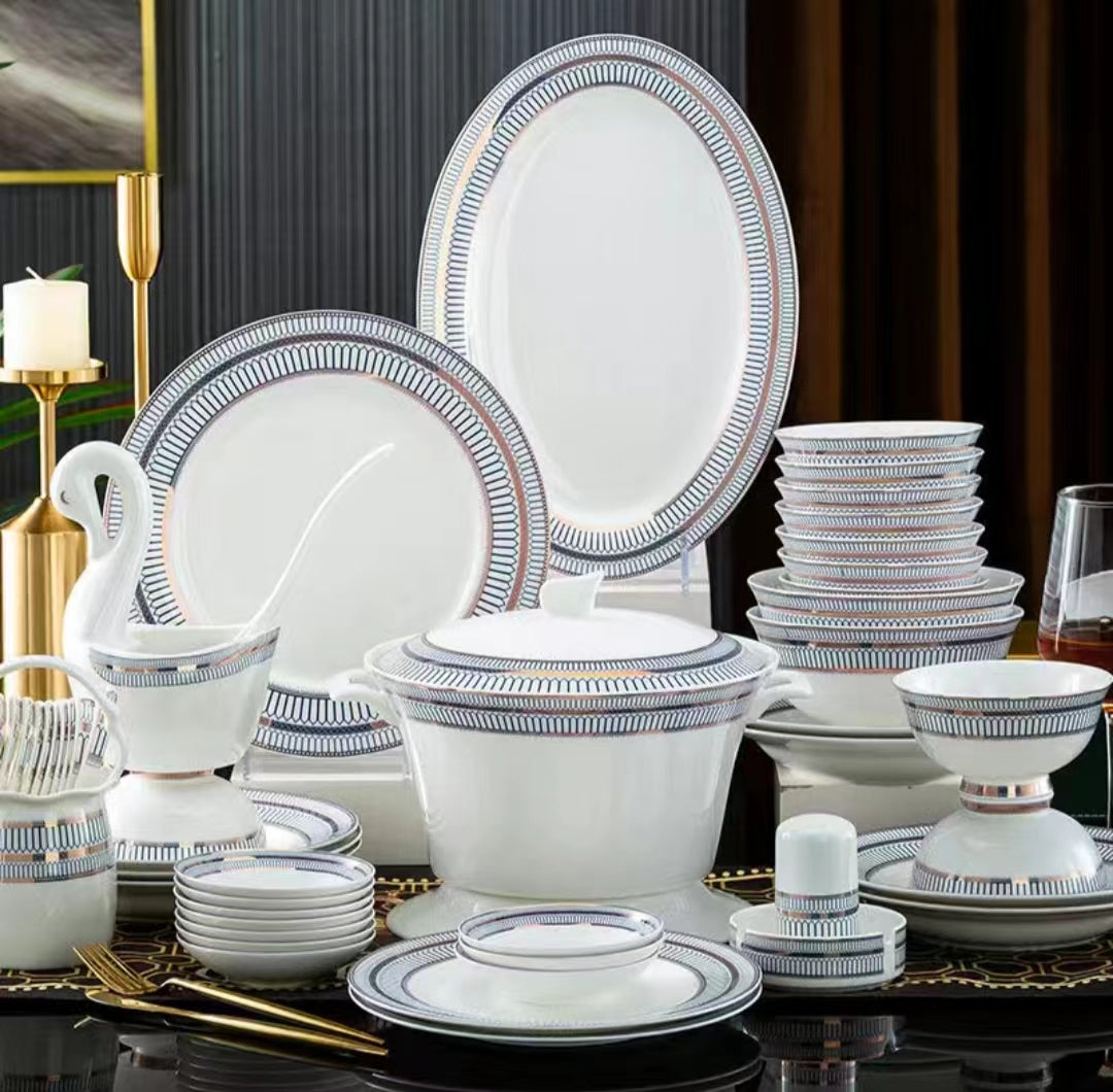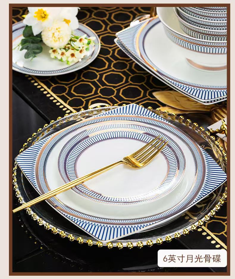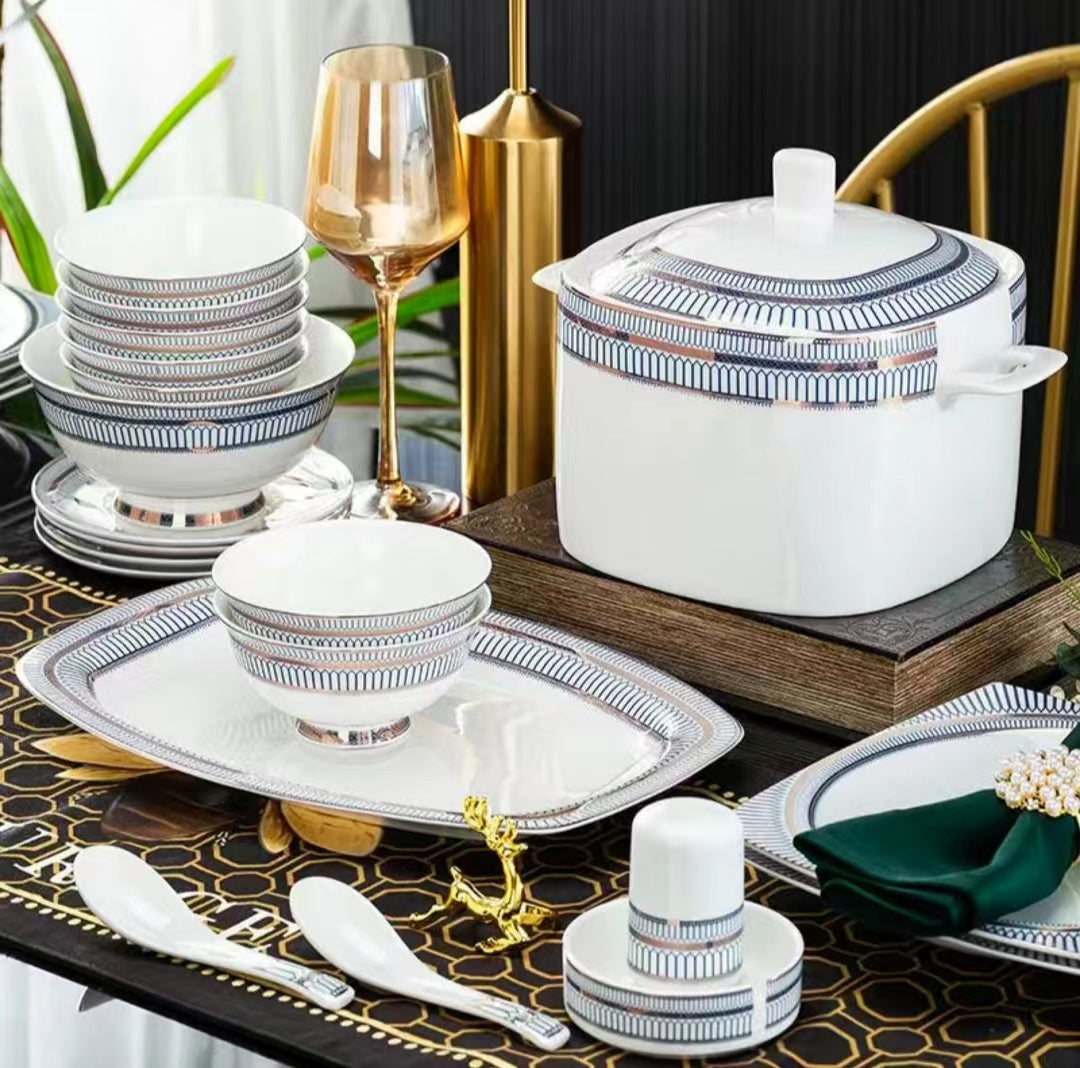 بورسلين سيراميك ذهبي عالي 60 رأس على الطراز الأوروبي مع خزف عظمي لتناول العشاء