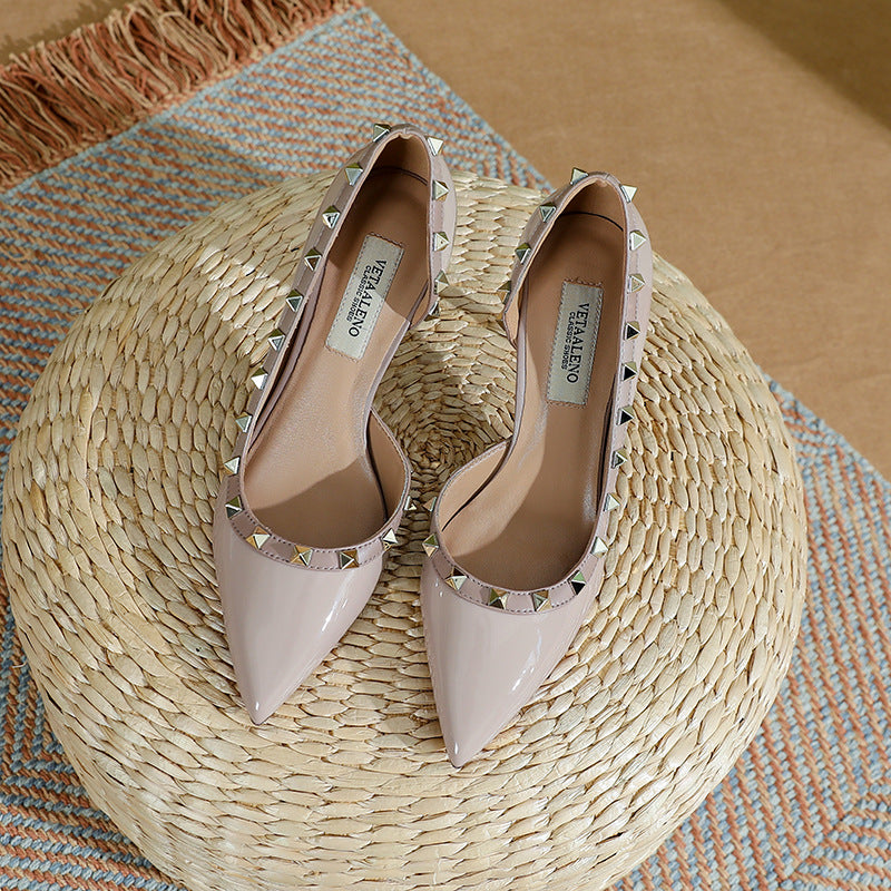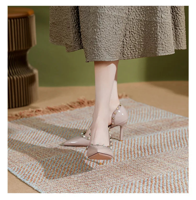 فاخر في الربيع والصيف للنساء بكعب عالٍ من الجلد الخنجر المثير المدبب من الجانب الفارغ برشام PU والخريف