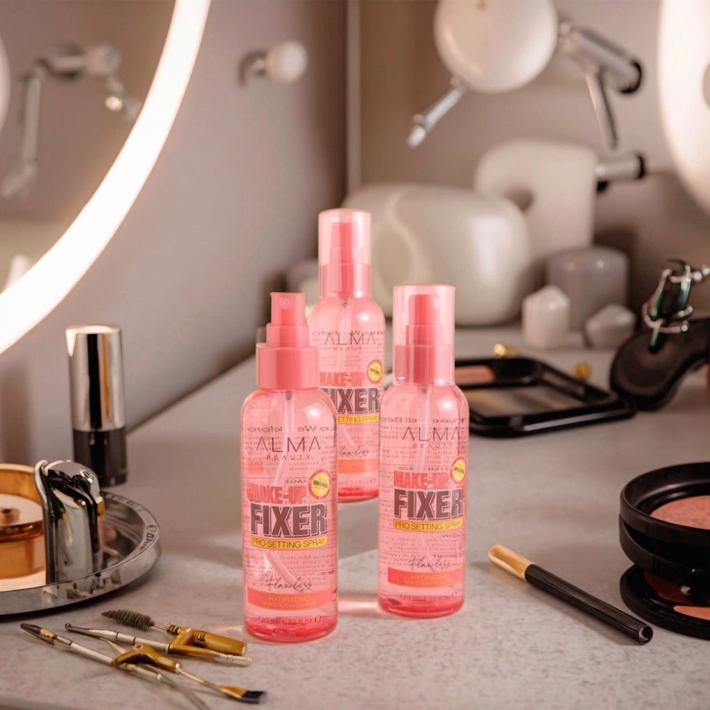 إعداد ماكياج ترطيب فائق النعومة من ألما بيوتي بخاخ تعزيز الإشعاع والتحكم في الزيوت والتبييض السائل المعدني برو الإعداد